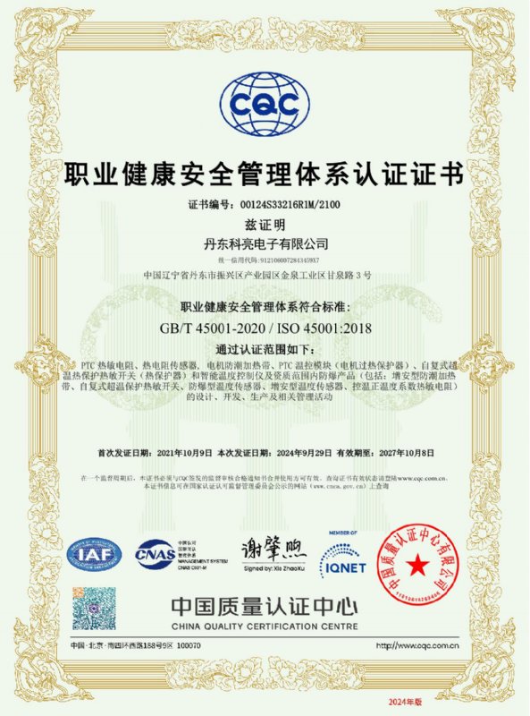 丹東科亮電子有限公司主要生產(chǎn)經(jīng)營電機保護PTC熱敏電阻、電機防潮加熱帶、電機保護熱敏開關(guān)、電機軸承及線圈溫度數(shù)字顯示傳感器,以及與傳感器配套的智能溫度顯示儀表等產(chǎn)品,并可根據(jù)用戶需求,可以特殊定制。